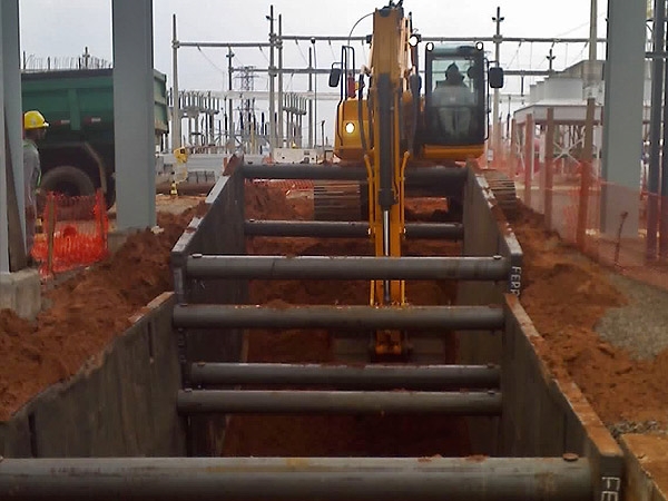 Totalmente seguras, as blindagens metálicas da Ferral são paredes duplas ou simples que escoram valas de qualquer comprimento, para todos os tipos de tubos, galerias e escavadeiras.